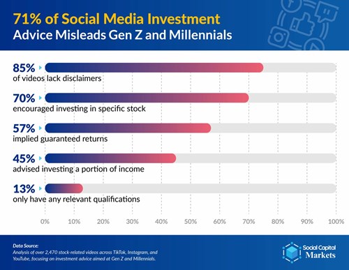 A recent analysis by Social Capital Markets revealed that 71% of financial advice targeting Gen Z and Millennials on social media is misleading, and only 13% of influencers providing financial guidance possess relevant financial qualifications.