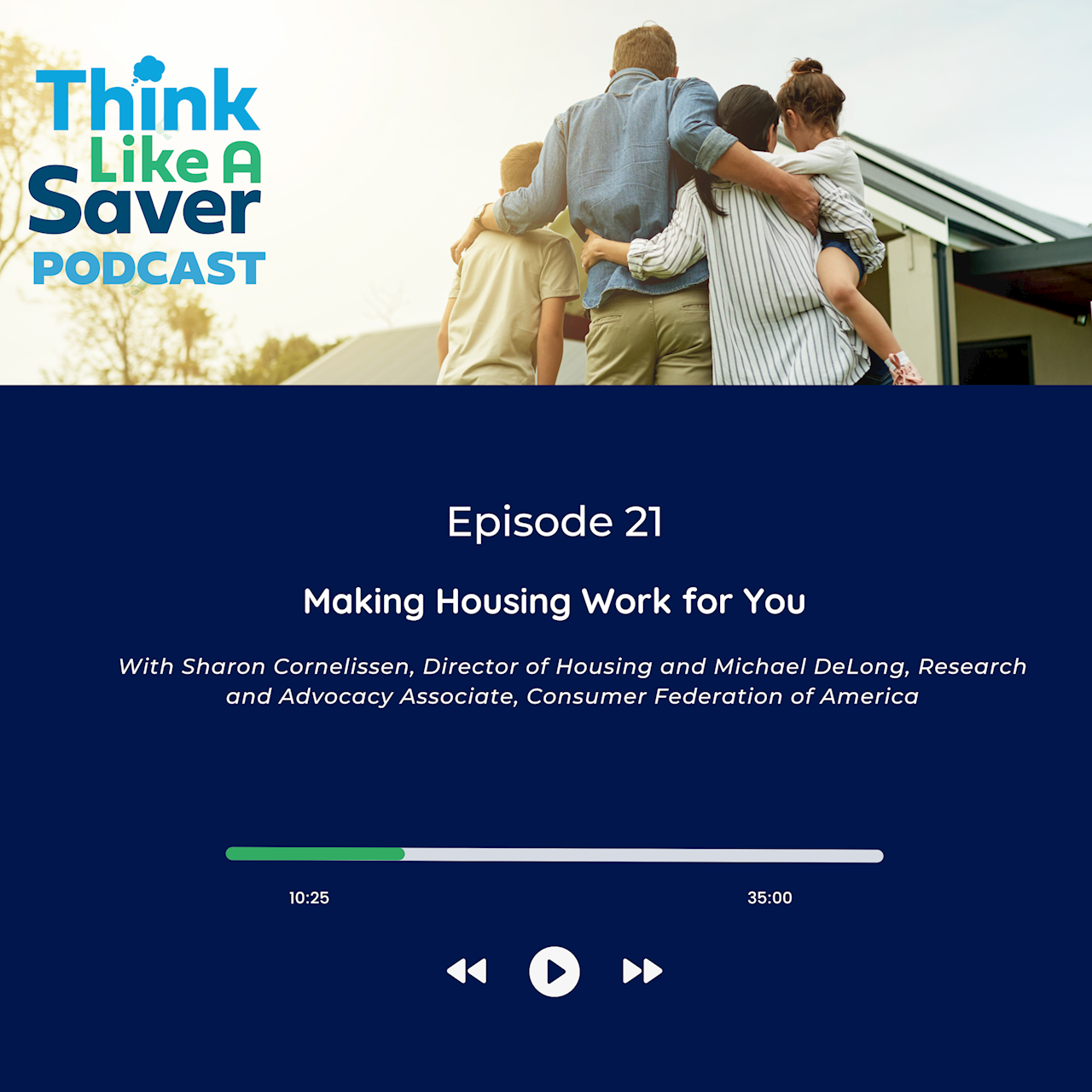 In this powerful episode of Think Like a Saver, hosts Amy Miller (America Saves) and Krystel Spell (Veteran Saves) sit down with housing expert Sharon Cornelissen (Director of Housing at the Consumer Federation of America), and Michael DeLong (Research and Advocacy Associate at CFA).